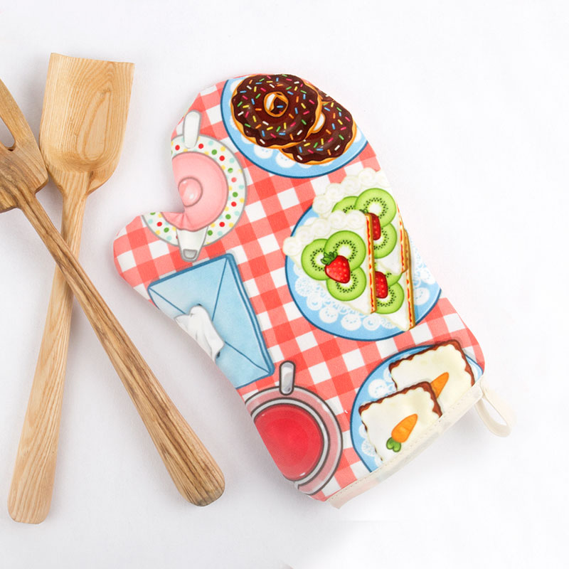 Verleihe der Inneneinrichtung deiner Küche ein harmonisches Gesamtbild, indem du das Design der Ofenhandschuhe auf Tapeten oder Möbel abstimmst. Inspirierende Zitate, kreative Typographien oder sogar deine eigenen Rezepte machen die Handschuhe zum echten Hingucker. Bringe Kreativität und Inspiration in die Küche.